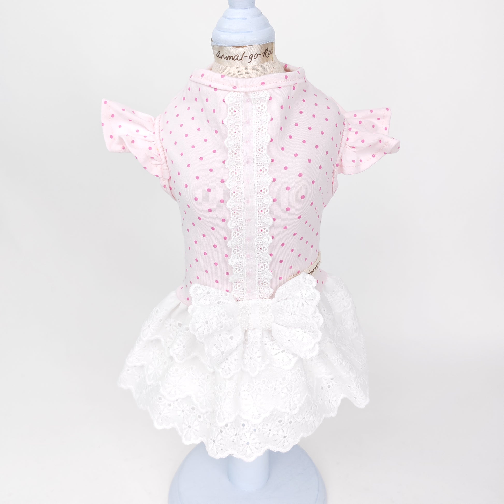 Animal-Go-Round เสื้อผ้าเครื่องแต่งกาย สัตว์เลี้ยง, หมา, แมว, สุนัข รุ่น Chérie Lace Pink Dot