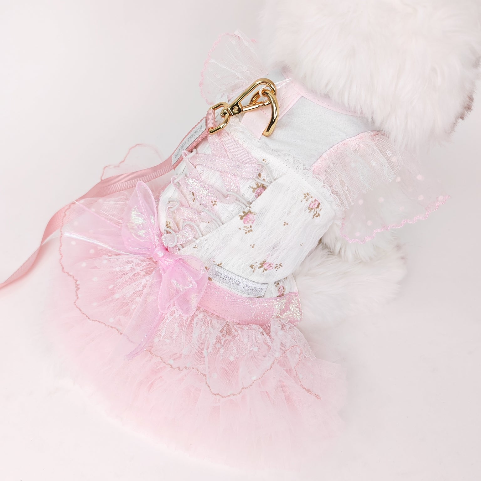Glitter Pooch Harness ชุดรัดอก สายจูง เสื้อผ้า สุนัข, หมา, แมว, สัตว์เลี้ยง พร้อม สายจูง รุ่น Étoile Tulle Ballet - Pink